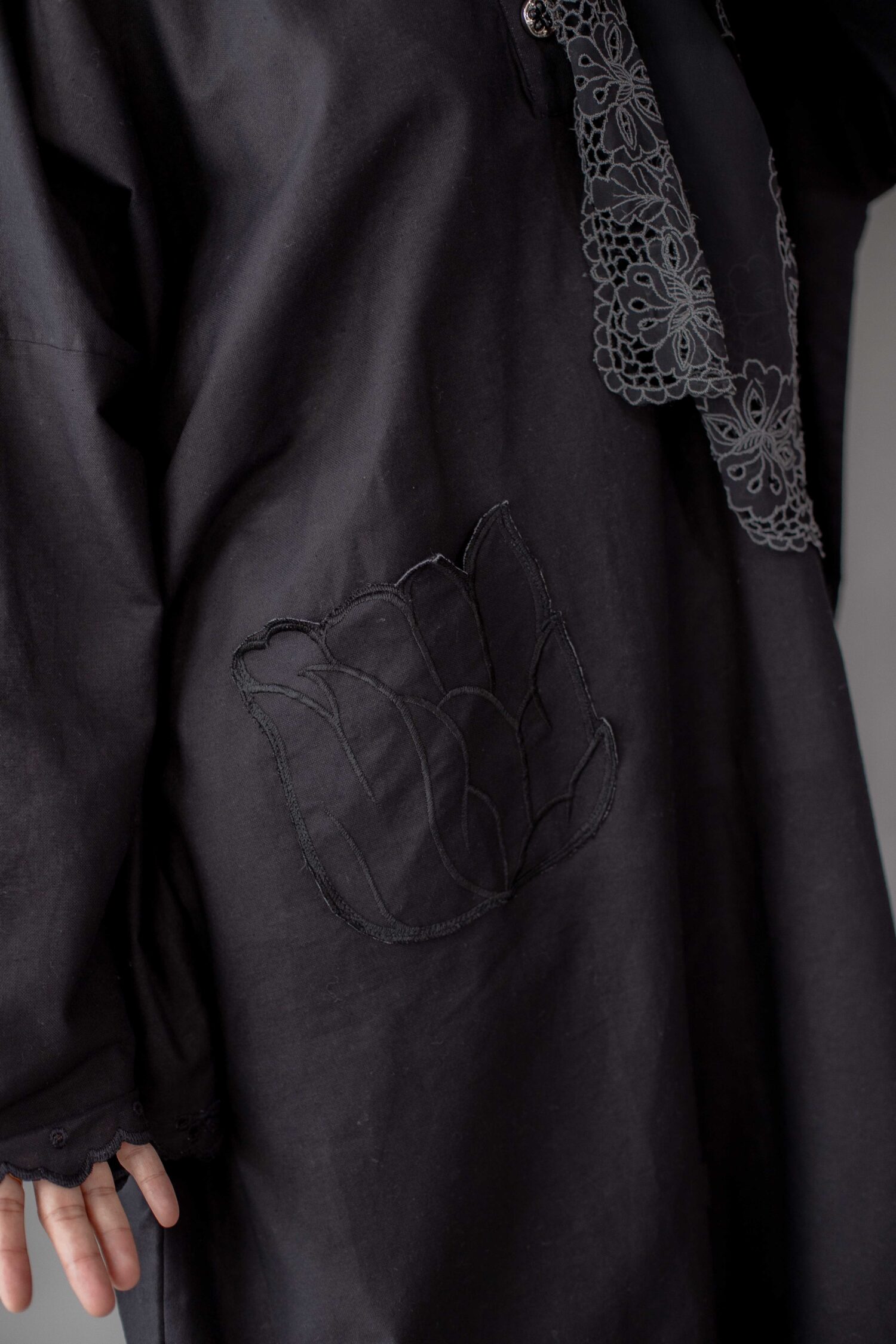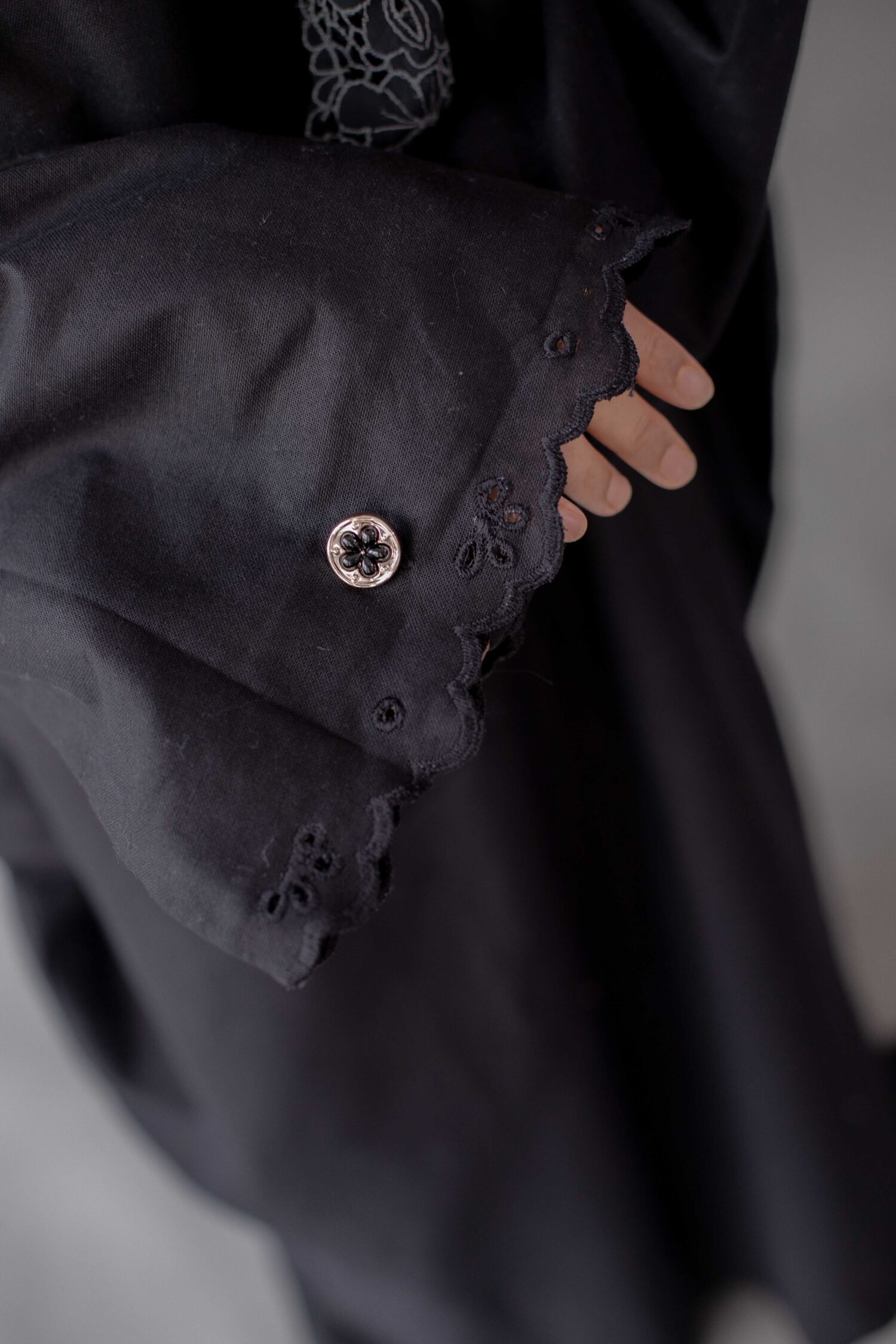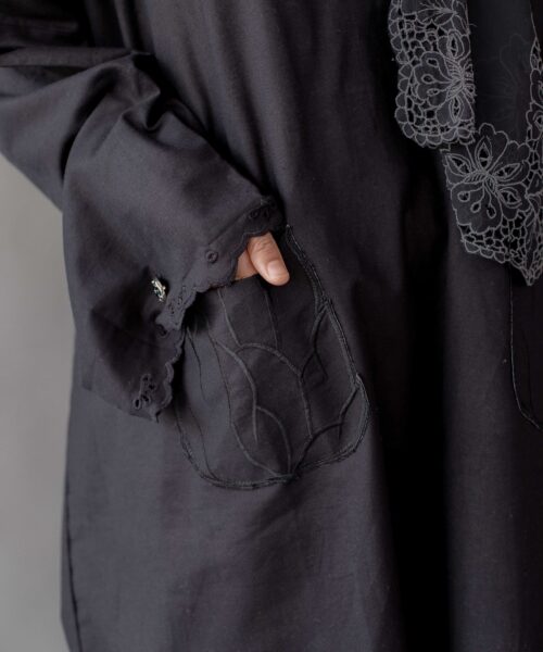 Made from soft cotton linen, featuring delicate embroidery, classic buttons, and a unique patch pocket for a refined touch.