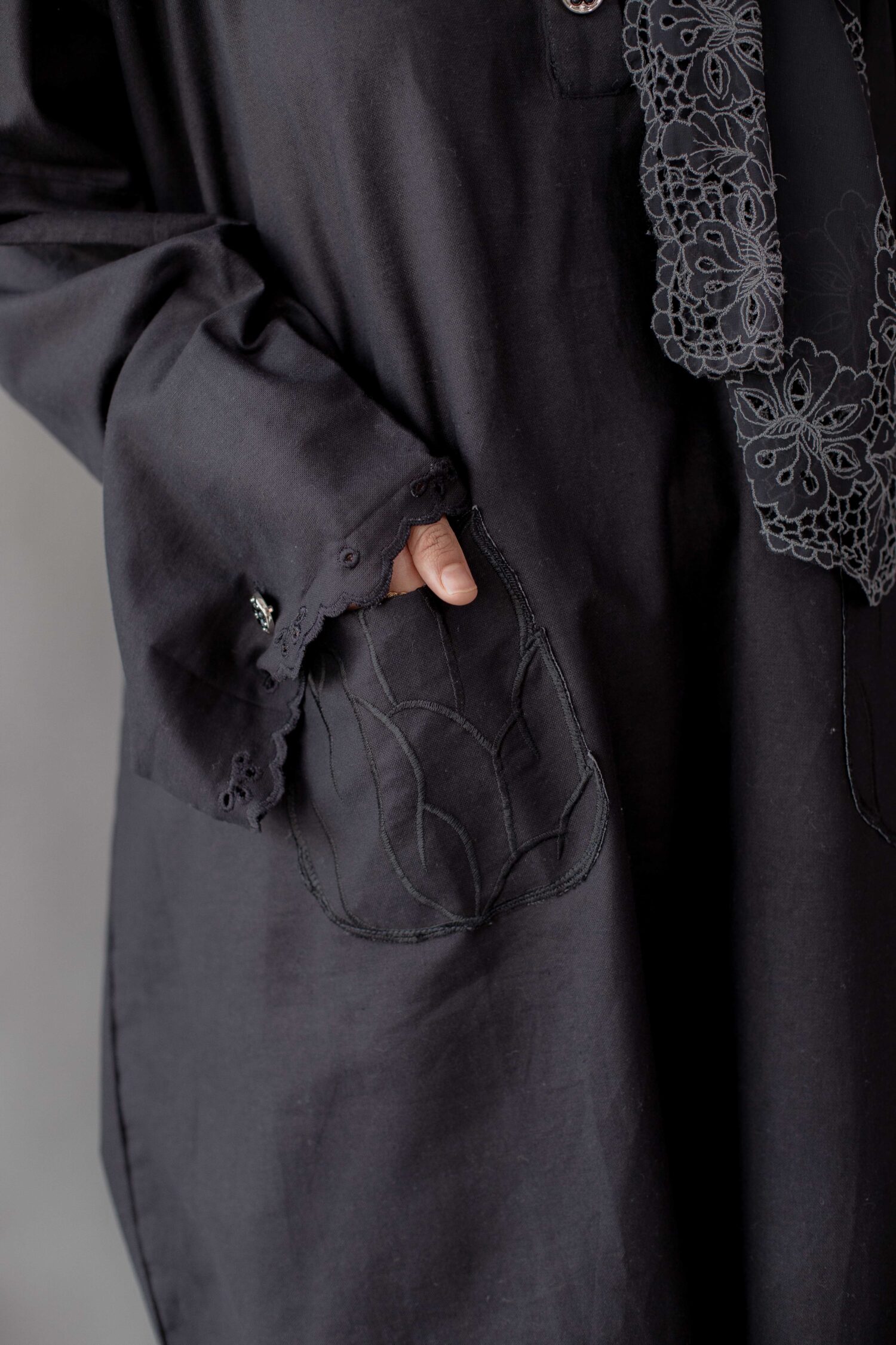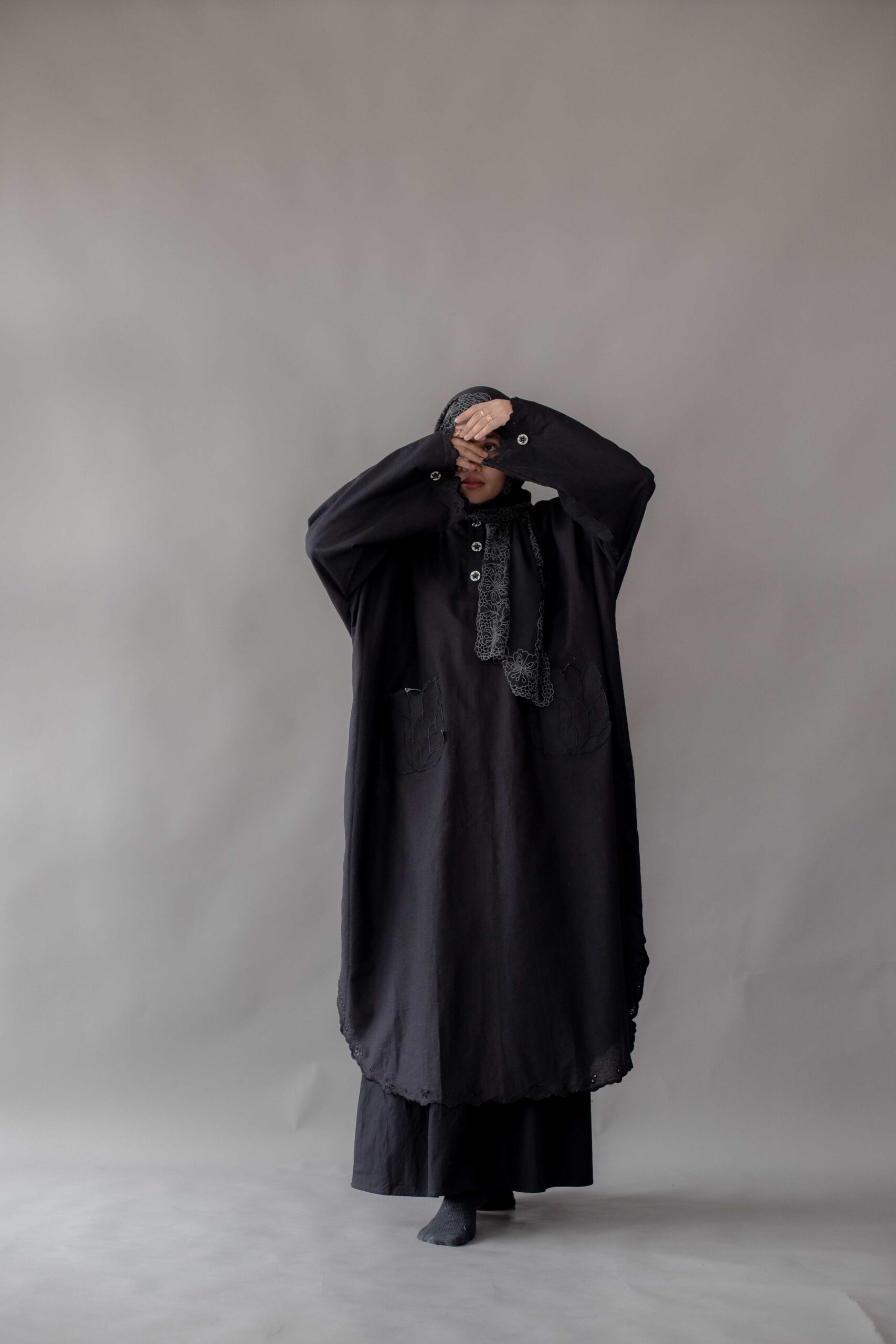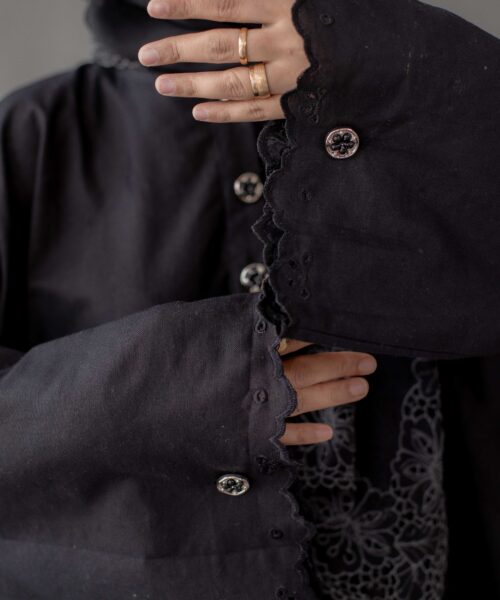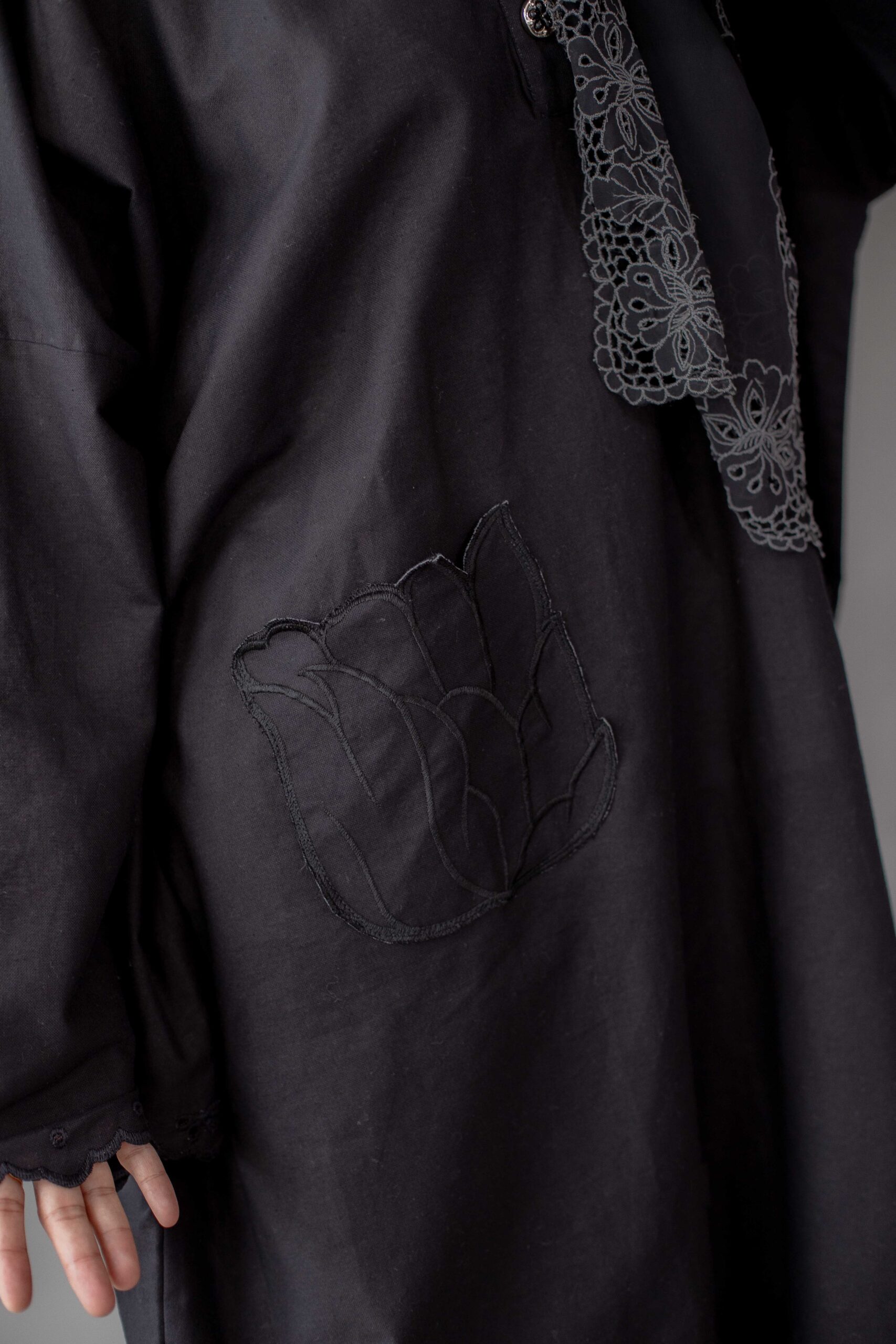 Made from soft cotton linen, featuring delicate embroidery, classic buttons, and a unique patch pocket for a refined touch.