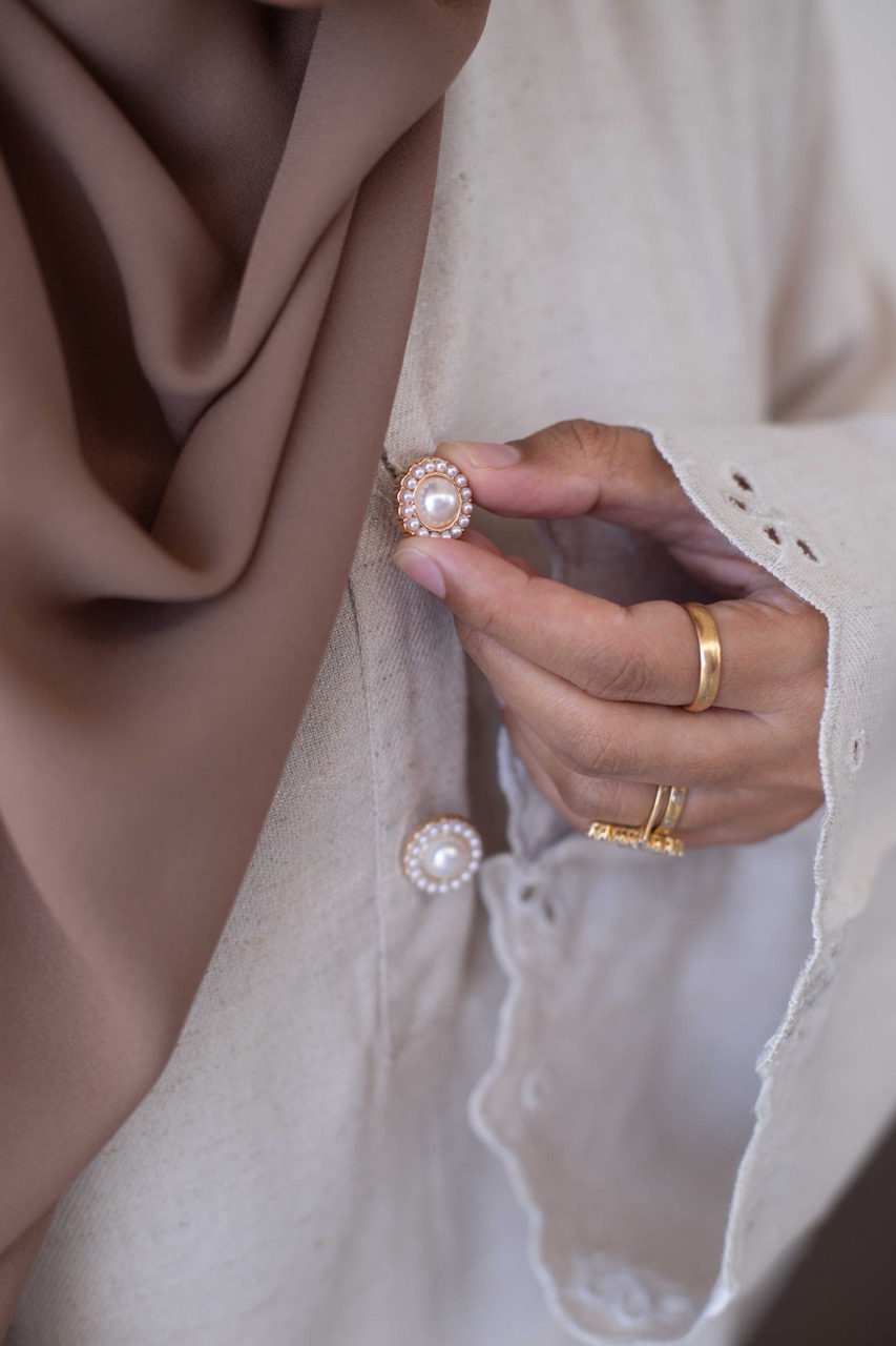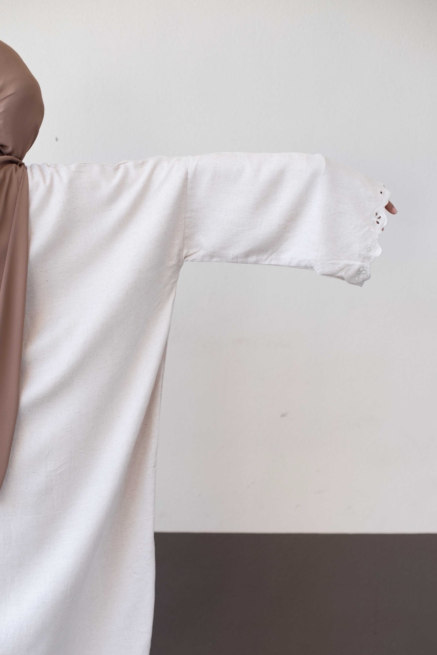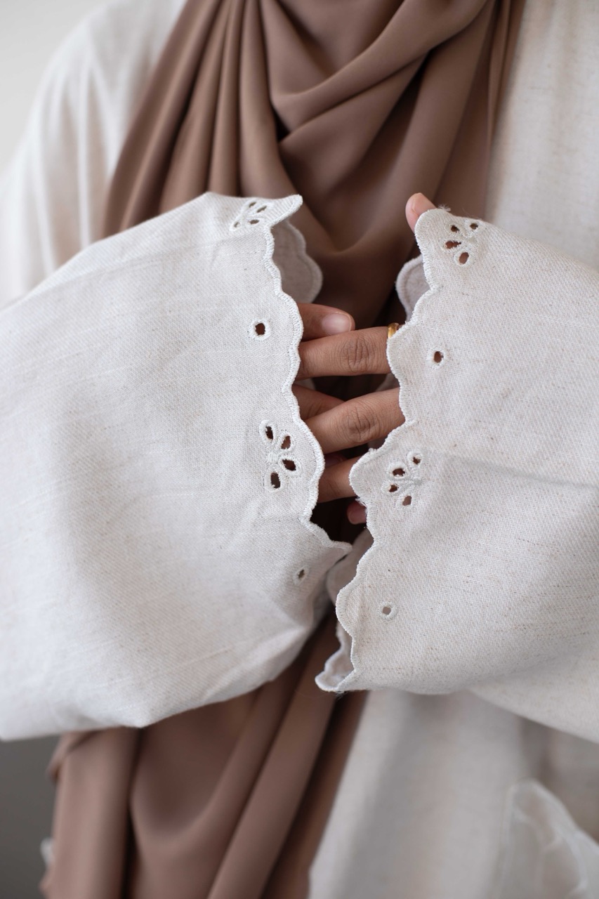 A timeless blend of elegance and comfort. Made from soft cotton linen, featuring delicate embroidery, classic buttons, and a unique patch pocket for a refined touch.