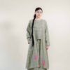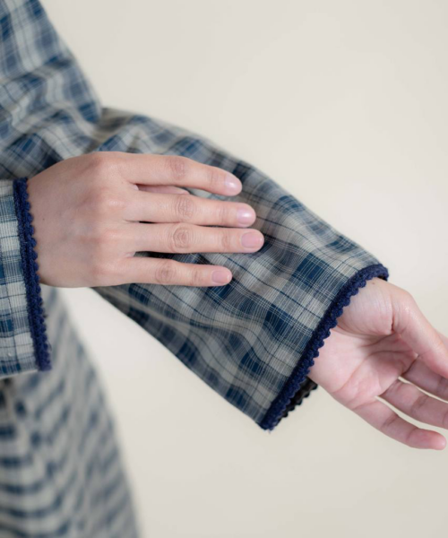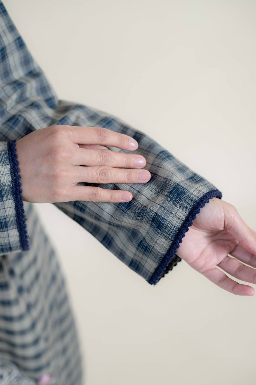 Crafted from a breathable cotton & linen blend, this kebaya offers comfort with a structured yet soft feel. It features cute border lace detailing, customised embroidery, and functional coconut shell buttons for a natural, refined touch.