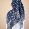 Inspired by the elegance of heritage textiles, the Kufiya Scarf brings together two timeless motifs — a delicate fish-net inspired grid and a refined houndstooth border. This unique blend creates a modern, structured look while still feeling soft, airy, and feminine.