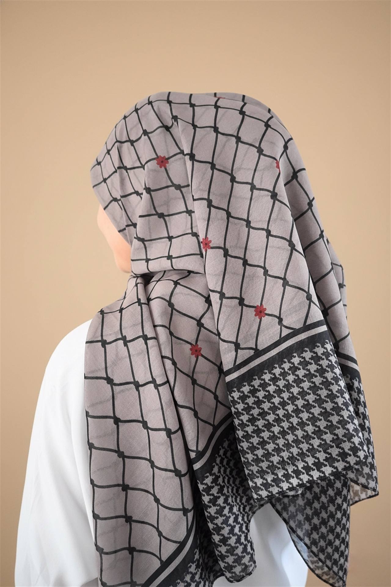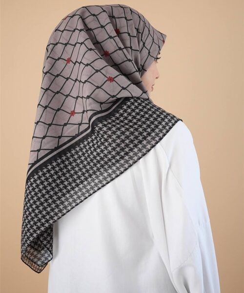Inspired by the elegance of heritage textiles, the Kufiya Scarf brings together two timeless motifs — a delicate fish-net inspired grid and a refined houndstooth border. This unique blend creates a modern, structured look while still feeling soft, airy, and feminine.