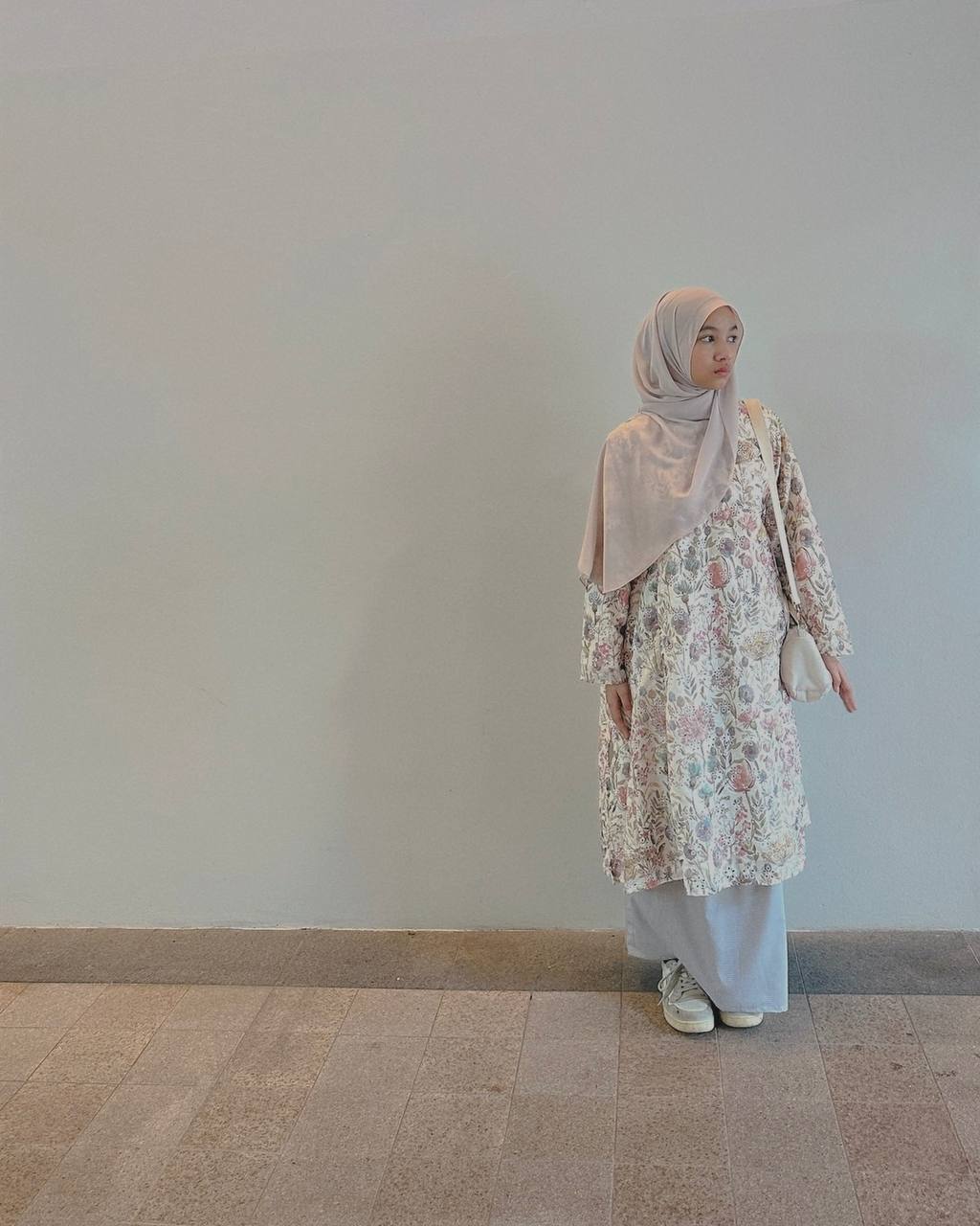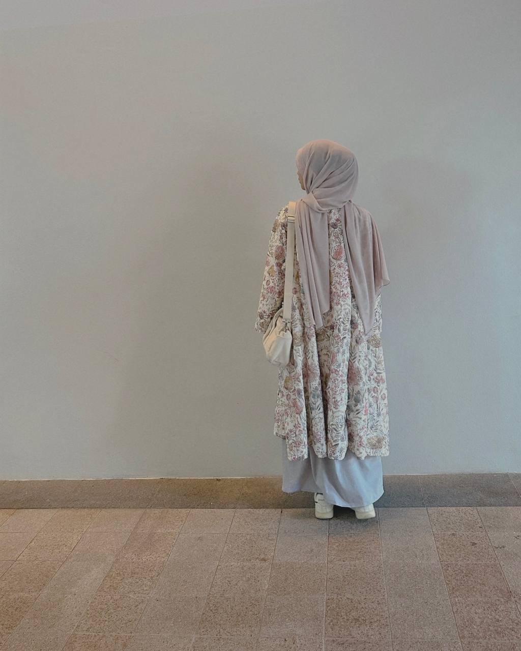 The silhouette is intentionally loose, allowing movement without clinging to the body — modest, effortless and timeless.