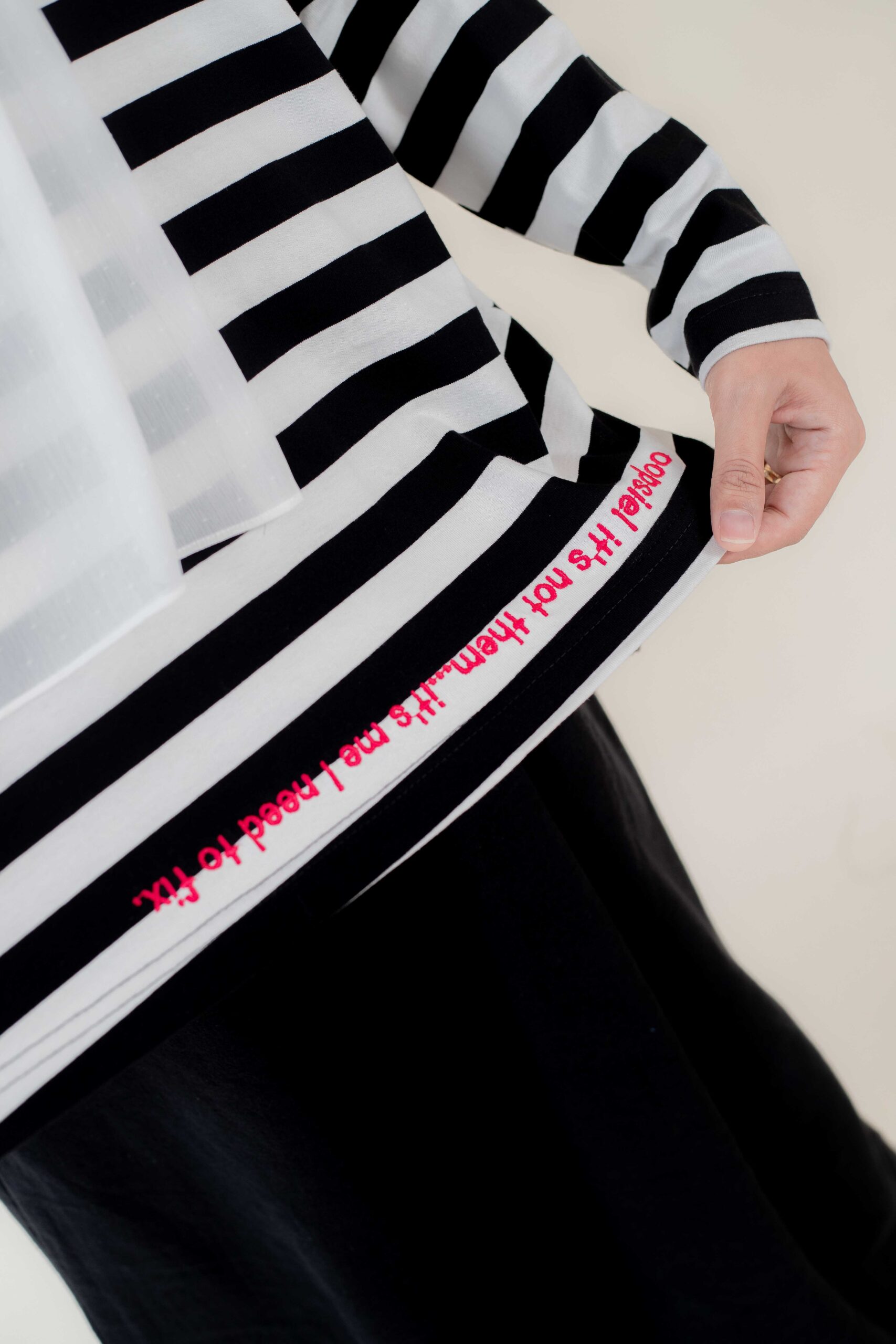 Bold contrast with a structured feel — neat on body.