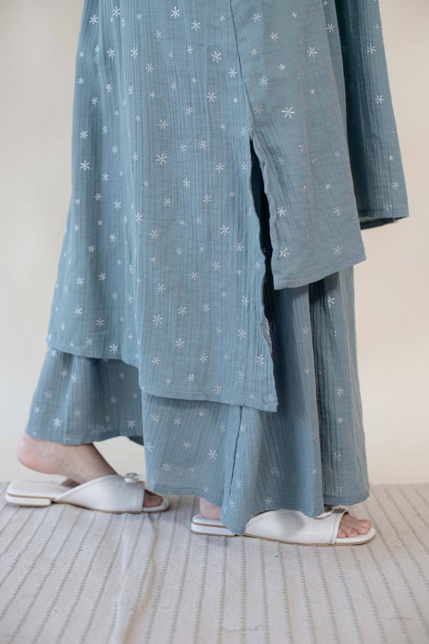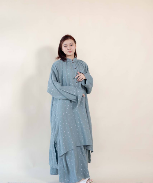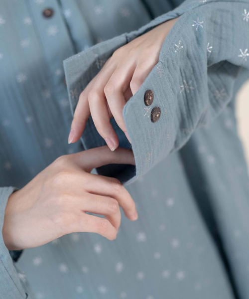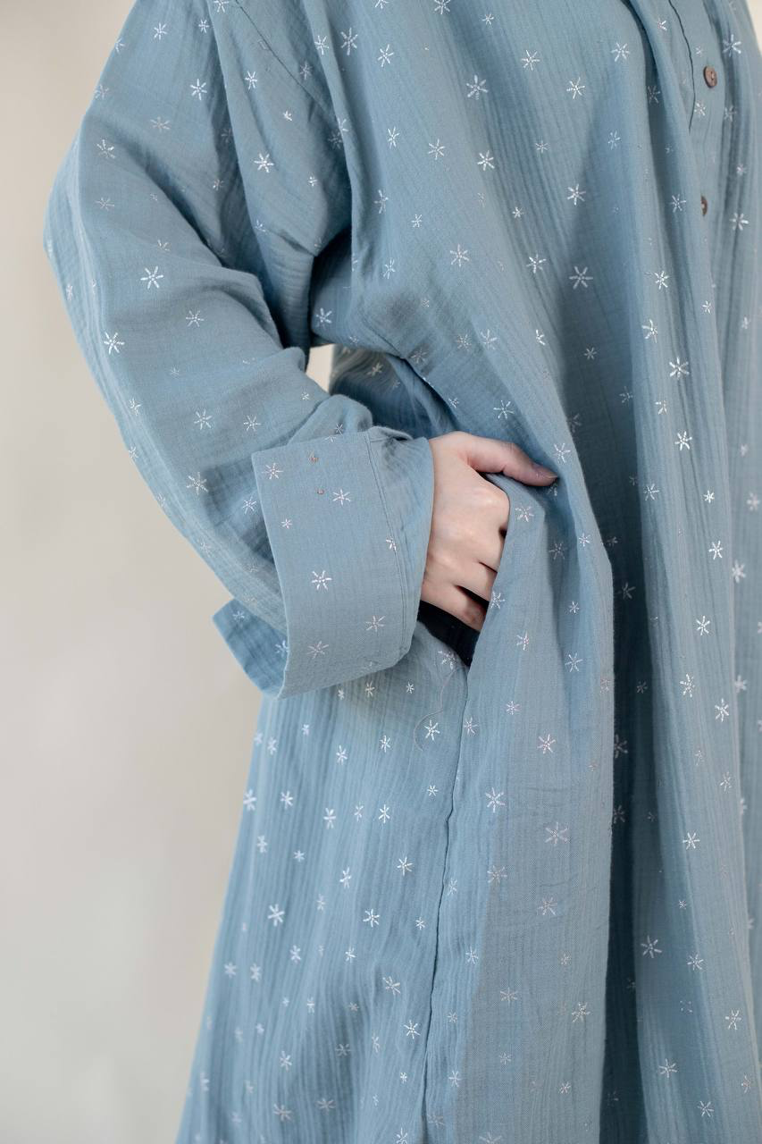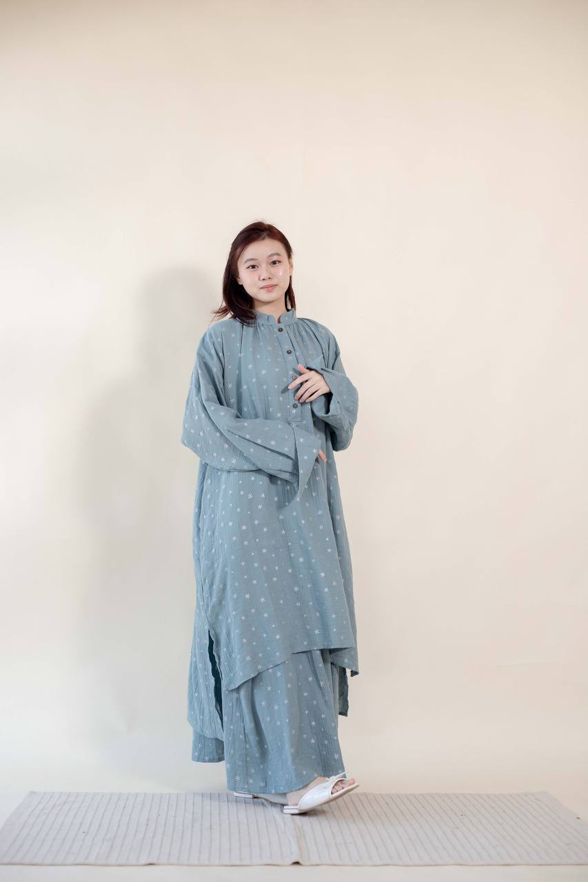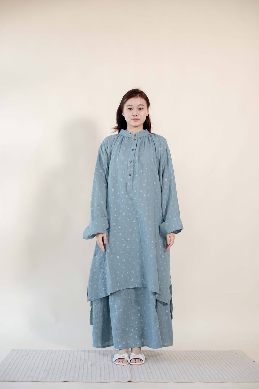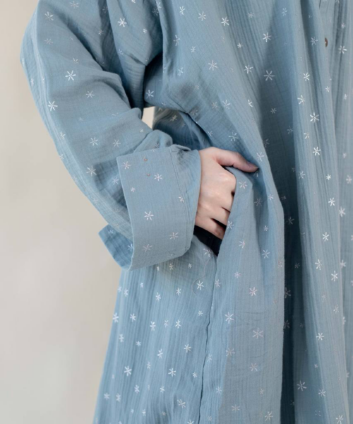 • Material: Textured crinkle fabric (double gauze) styled with minimalist, scattered star motifs.