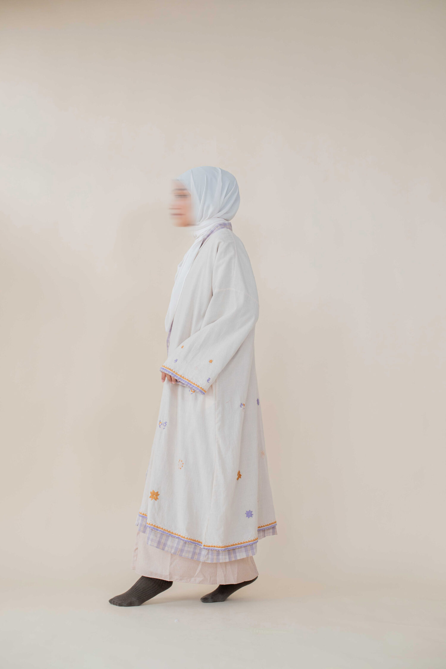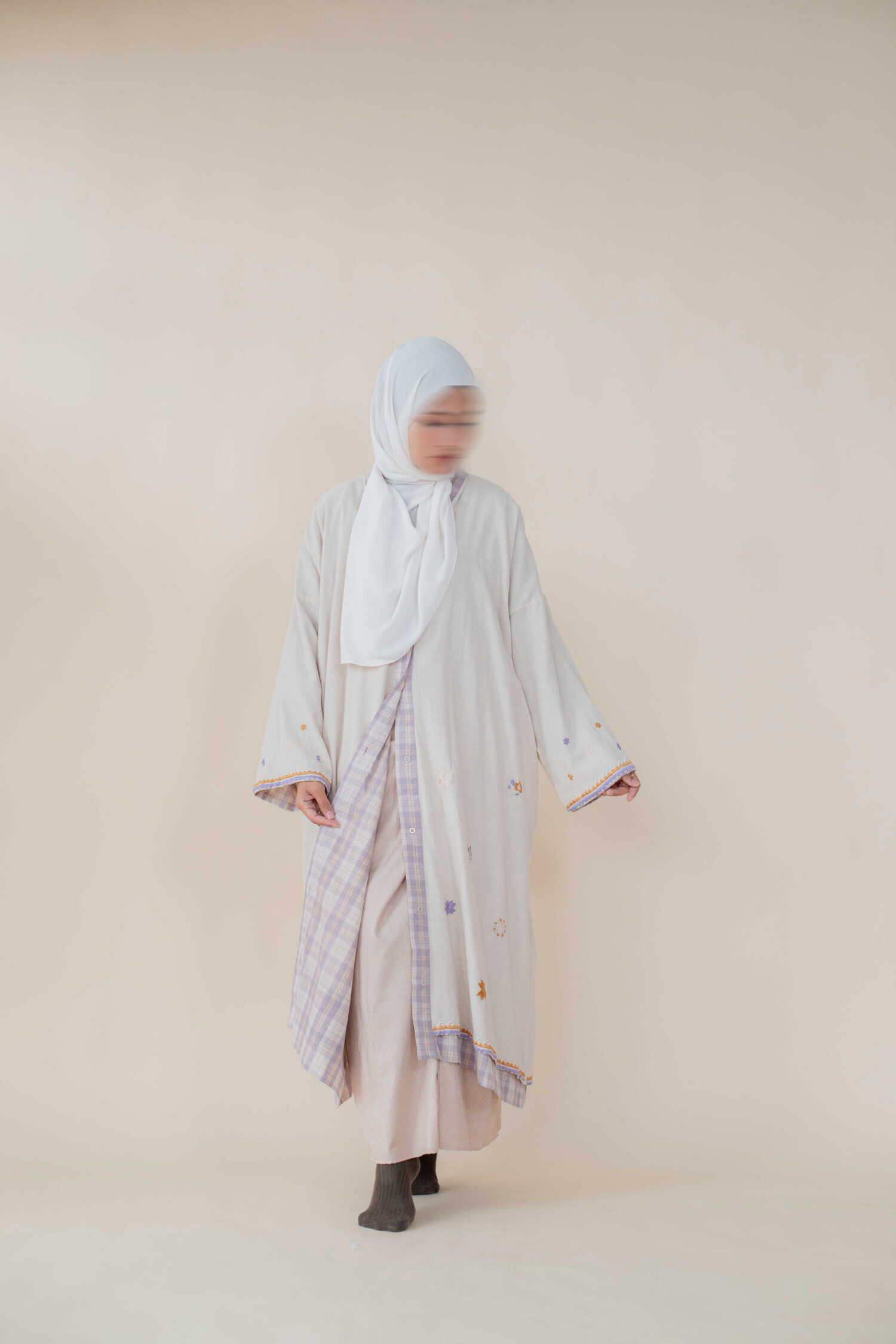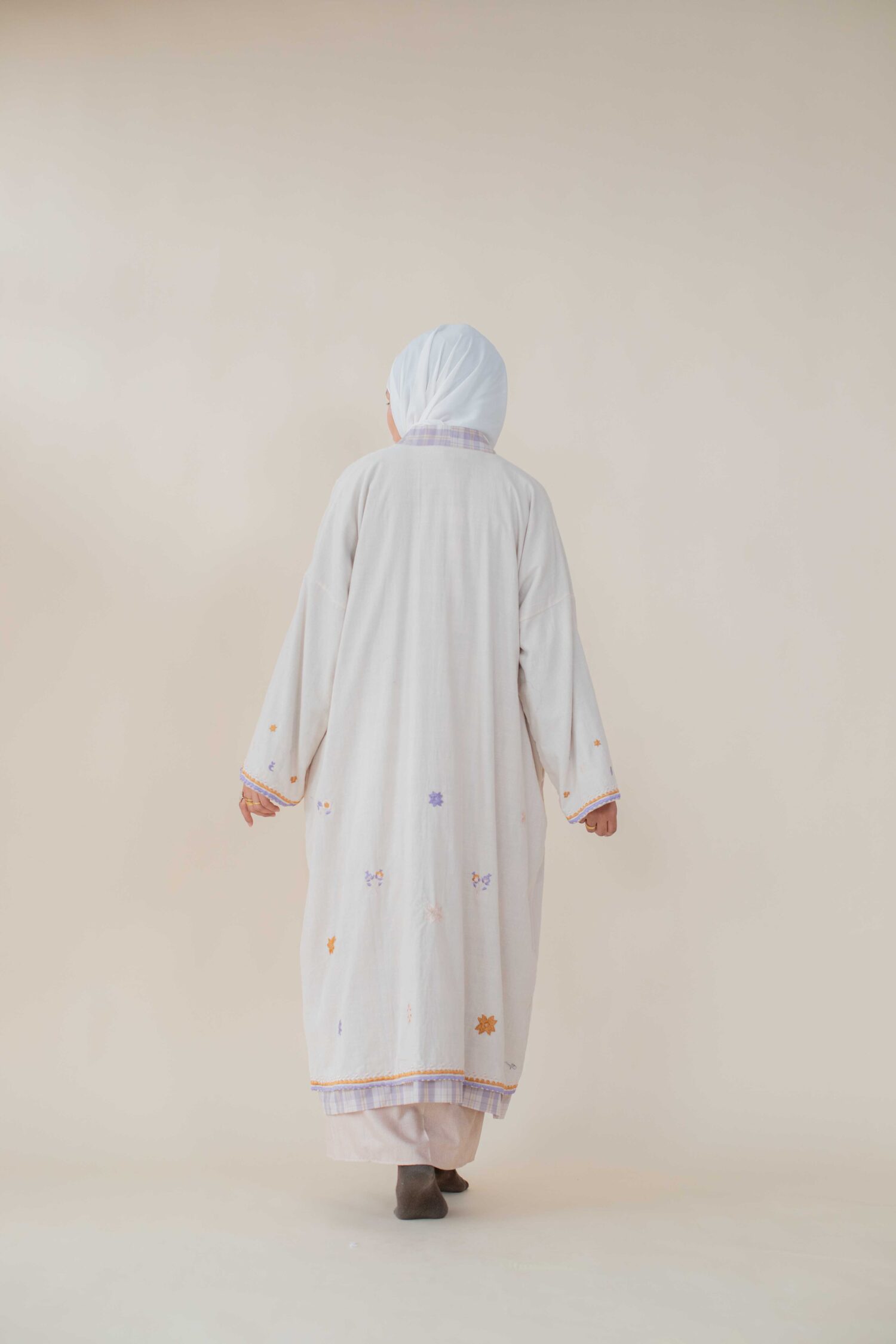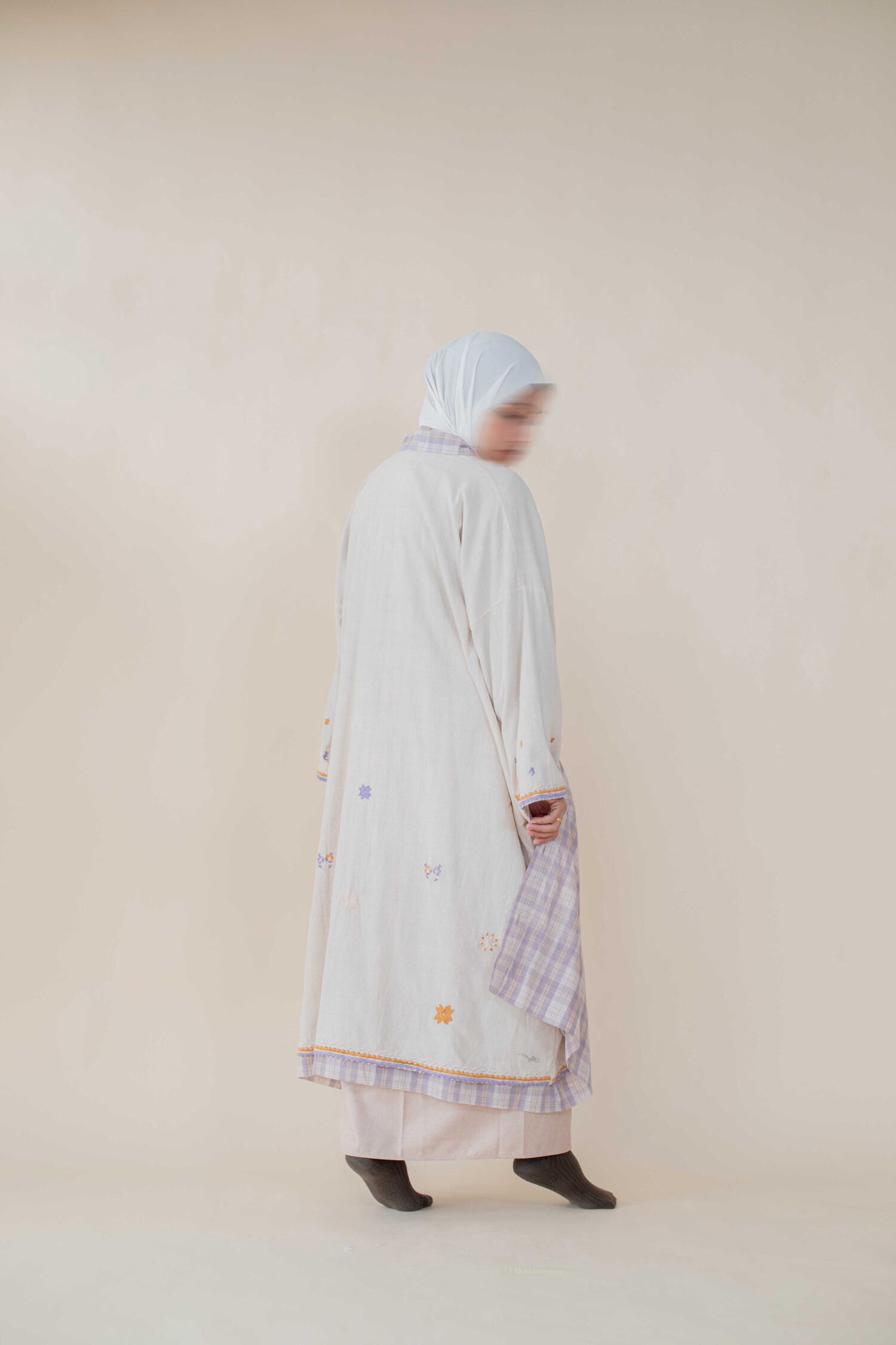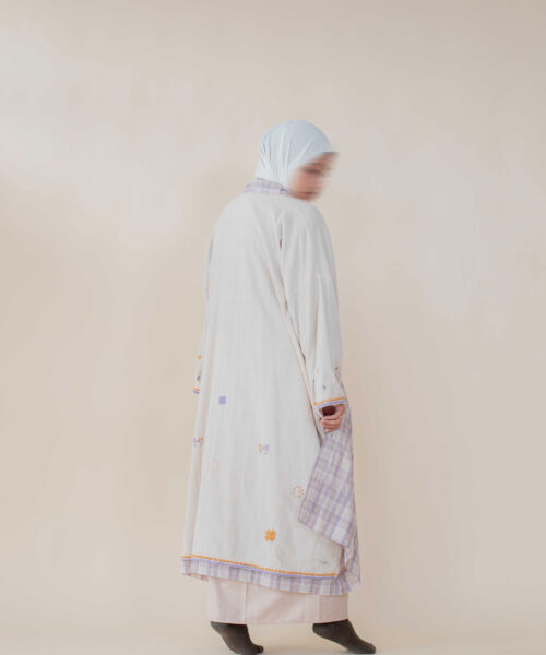 Our lovely Puspa Kebarong, the material falls perfectly onto the body and blends in so well with the rest of the kebarong, giving elegance and femininity. Crafted from a cotton voile with additional floral embroidery.