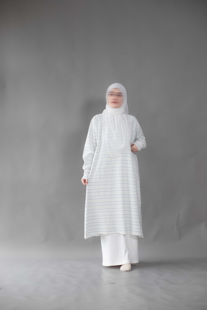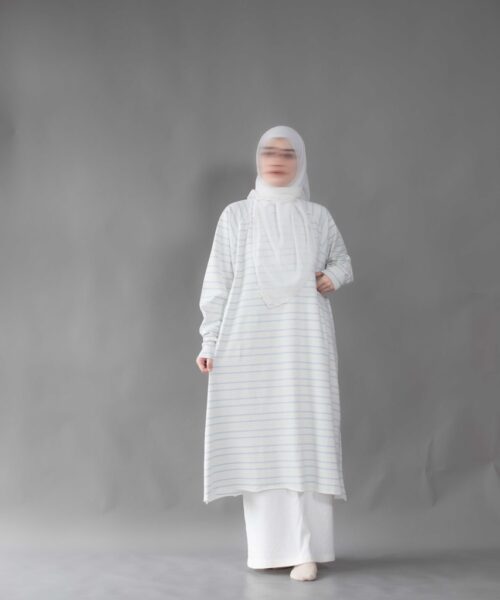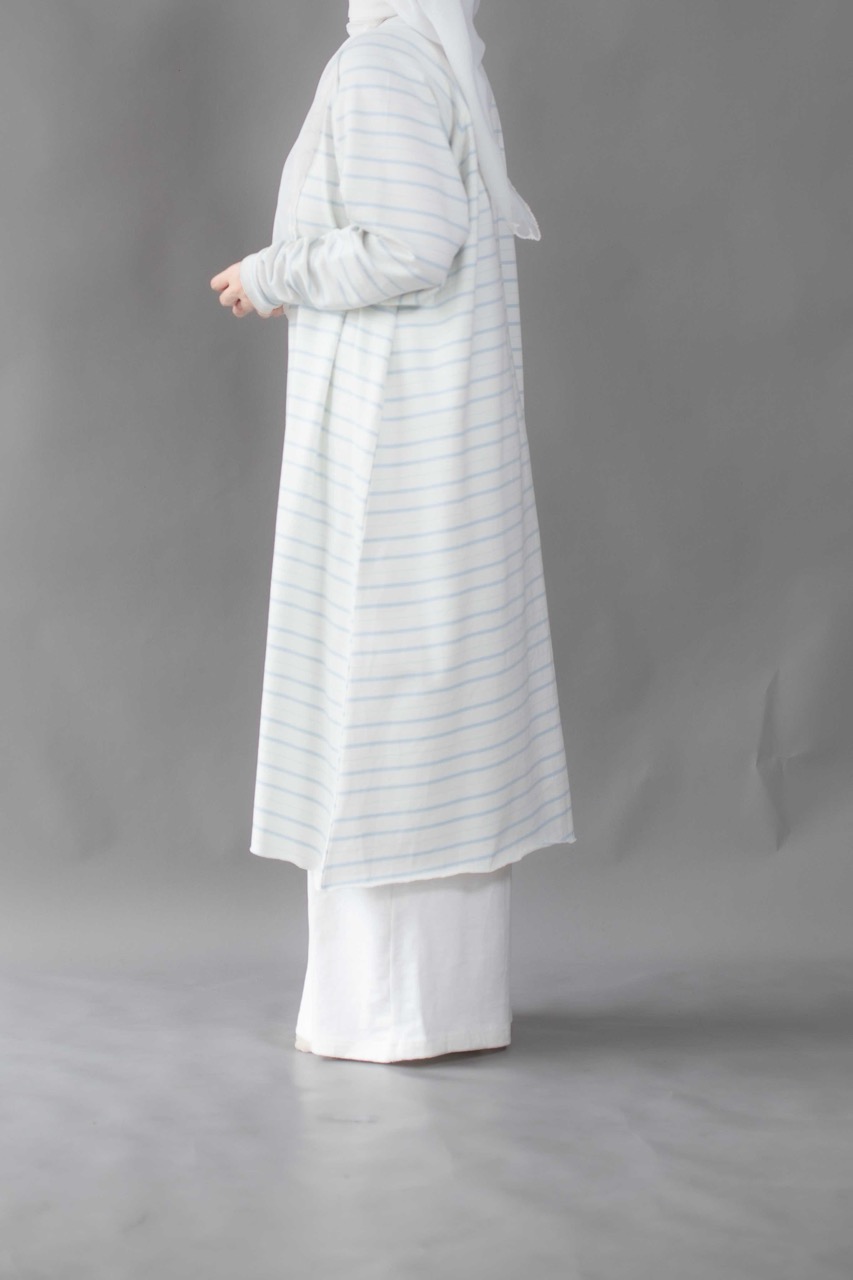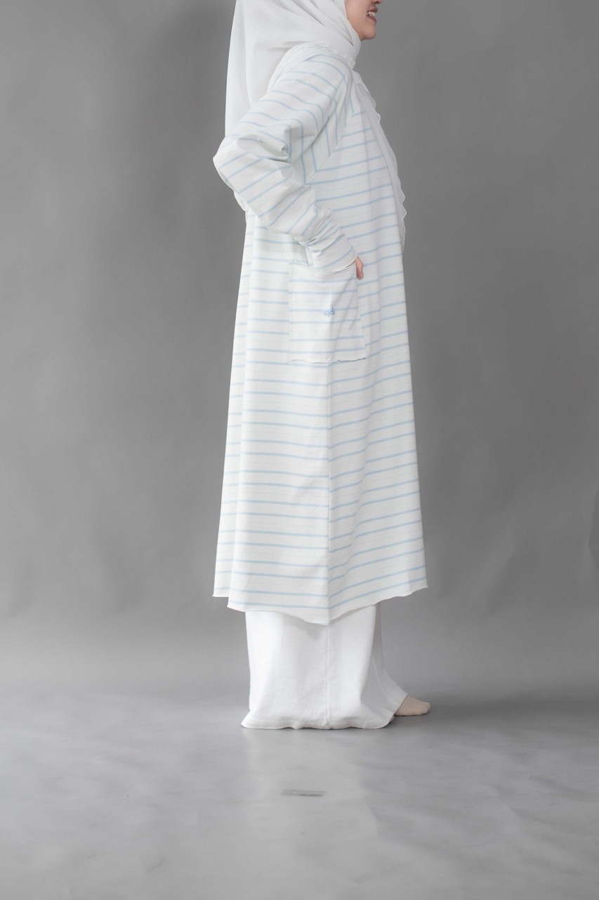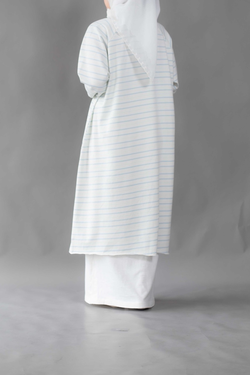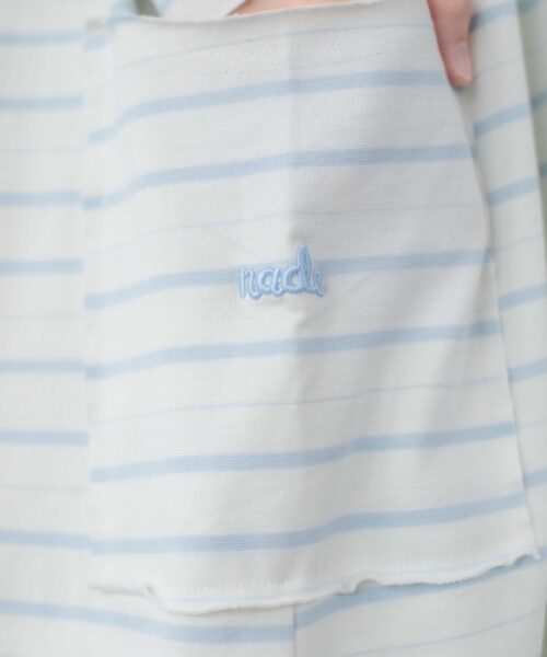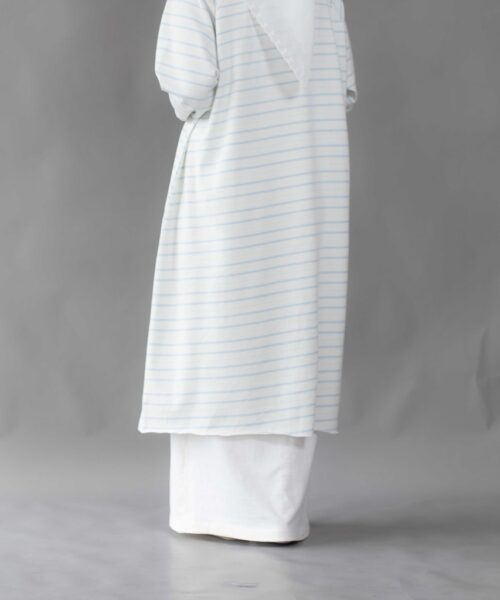 Cute and sophisticated, featuring timeless stripes and colorful, textured fabric. Designed with long raglan sleeves and a round neckline. Cuffed sleeves and raw hemming add a touch of dimension.